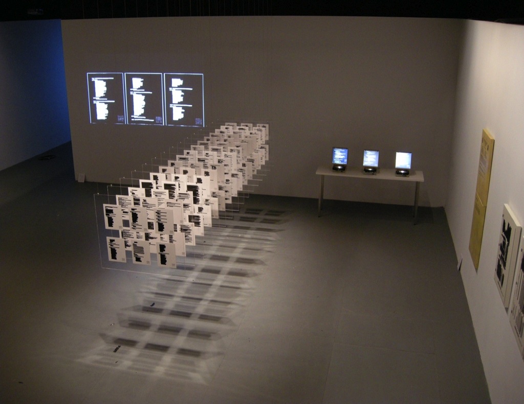 L’installation est basée sur le code source de la version 4.3.1 du logiciel AccuVote-TSTM de la firme Diebold. C’est ce code qui est présenté, en partie imprimé sur papier, et consultable sous forme de microfilm sur plusieurs lecteurs de fiches.