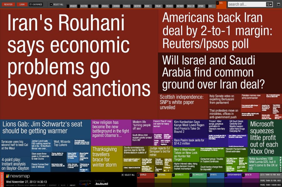 Une visualisation de flux de news en temps réel, un outil complet et complexe permettant de multiples filtrages et un accès à tout instant à l’information d’origine.