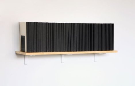Les livres de la pièce "Photo album", de Cody Trepte, un jeune artiste américain vivant à Los Angeles, sont dans cette lignée. Trepte cite d’ailleurs dans les titres de ses oeuvres Sol Lewit aussi bien que Alan Turing, comme si le pont entre la recherche sur l’intelligence artificielle et l’art conceptuel était évidente. C’est pourtant à Hanne Darboven, une des plus radicale des artistes conceptuelles, que l’on pensera avec cette pièce, ou l’information est à la fois gonflée - de l’image vers un texte binaire - et en même temps ramassée dans la forme du livre.