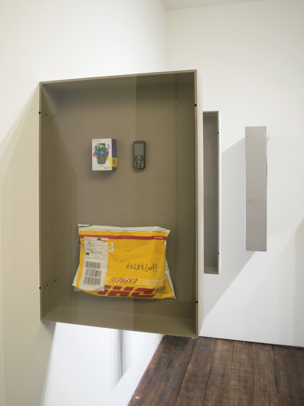 !Mediengruppe Bitnik se situe dans le prolongement de cette réflexion, mais dans une ère post-industrielle et une économie capitaliste triomphante. La célébration ambiguë de l’objet industriel de Duchamp est ainsi prolongée par l’exhibition de la contrefaçon, du faux, comme dernier stade de la marchandisation du monde. Là où le fini industriel, lisse et impersonnel, fascine Ducamp pour la disparition de l’auteur derrière la machine, Carmen Weisskopf et Domagoj Smoljo offrent aux regards les paquets de transport abimés qui nous rappellent que cette esthétique est rendue possible par des millions de petites mains.