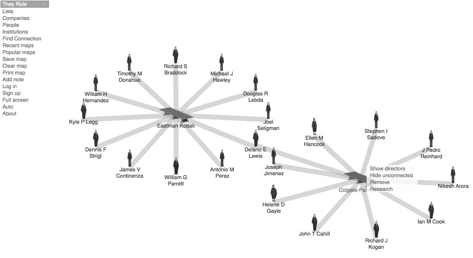 They rule permet d’avoir accès à une information cachée même si elle n’est pas secrète : qui siège aux conseils d’administration des grandes compagnies internationales, comme IBM ou Coca cola. Et surtout, quels autres postes occupent ces mêmes personnes dans d’autres lieux de pouvoir ?