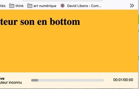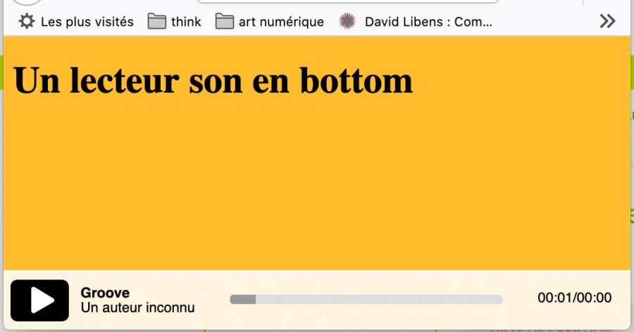 <link rel="stylesheet" href="lecteur_son/lecteur.css">Puis créer le tag audio en lui donnant la classe .lecteur-son :