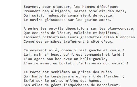Il prend le poème "L’albatros" de Baudelaire et le modifie sur base d’une liste de mots de la langue française.