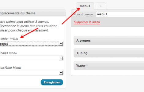 Les menus se créent dans l’administration de wordpress, par un système "drag and drop". On peut ajouter dans les menus dans l’ordre désiré pages, posts, liens libres, catégories, tags.