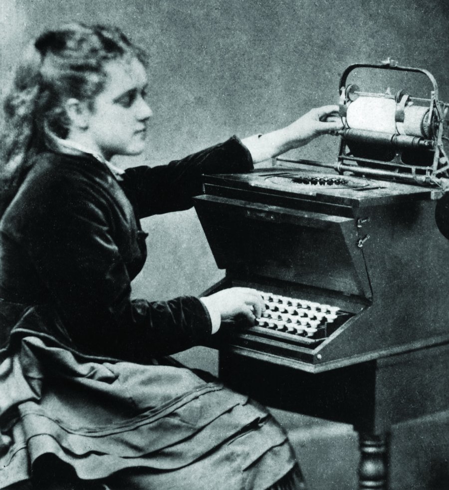 Christopher Latham Sholes brevette de sa machine à écrire, « the typewriter » en 1867. Sa machine a un problème : quand on frappe trop rapidement, les bras qui impriment les lettres sur le papier s’emmêlent.