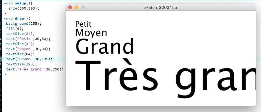 La taille d’un texte peut être changée avec la fonction textSize() ;