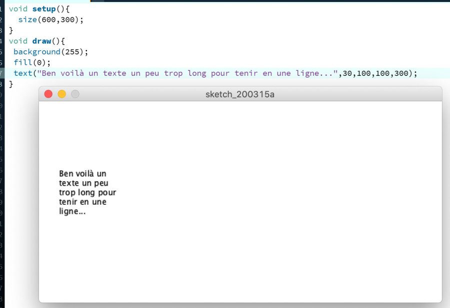 Remarquons que Processing n’attache aucune importance au fait que le texte déborde de tous côtés.
