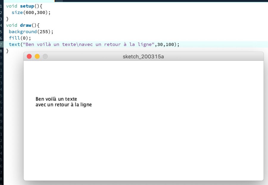 text("Ben voilà un texte\navec un retour à la ligne",30,100);